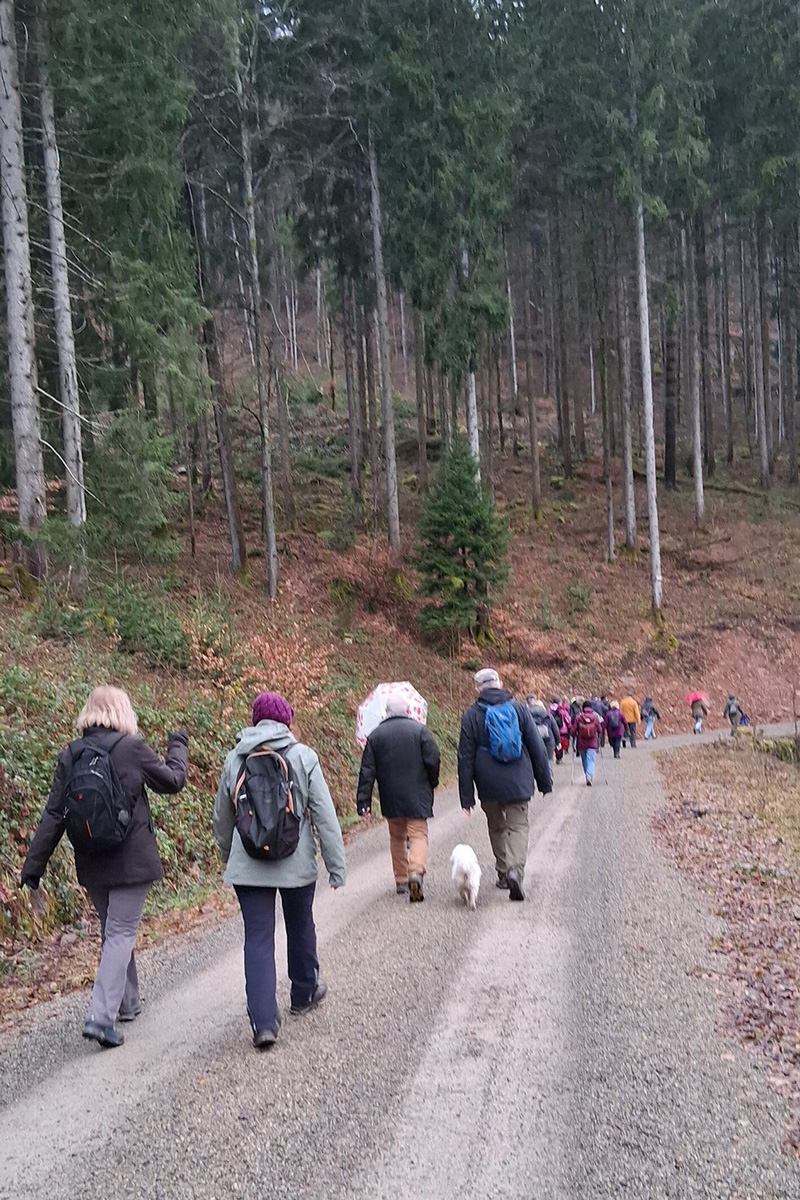 25 Wanderfreunde trauten sich bei mäßigem Wetter mit auf den Weg.