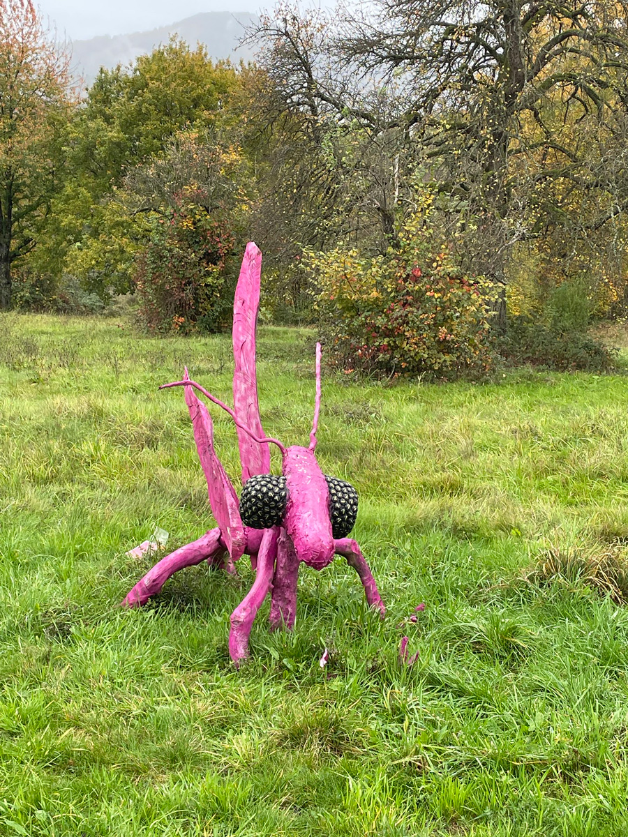Eine Kunstaustellung am Wegrand, ideenreich und mit natürlichen Materialen, brachte uns zum Staunen.