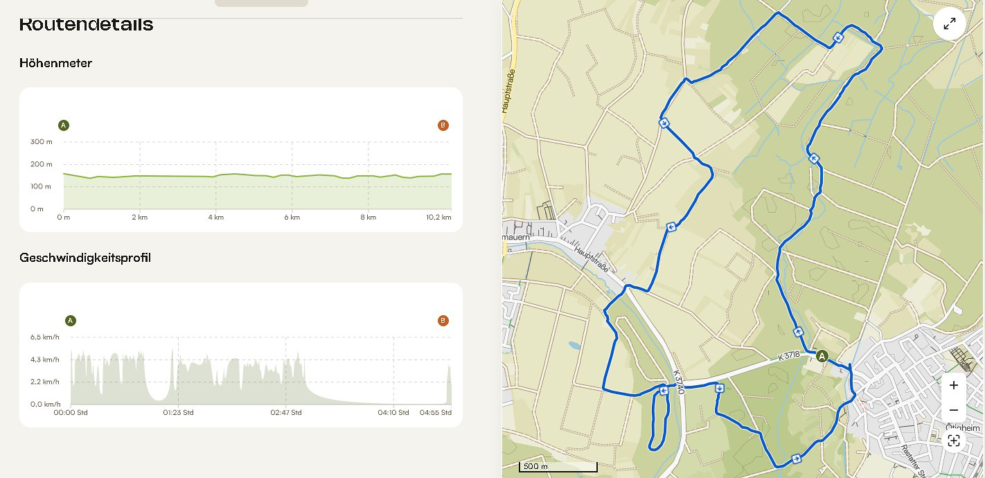 Die Wandertour hat eine Länge von 11 Kilometer und keine Höhenmeter.