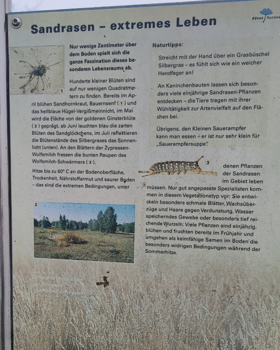 Auf Infotafeln wird über die Entstehung des Gebietes mit seinen seltenen Pflanzen und Tieren informiert.
